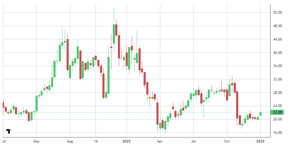 That said, this is not a long-term hold. Growth visibility remains weak, the fundamental story lacks catalysts beyond the cycle itself, and there’s little evidence yet of a sustained earnings inflection. We view AOSL as a short-to-medium-term opportunity to express a view on the semi cycle not a business to own through it.