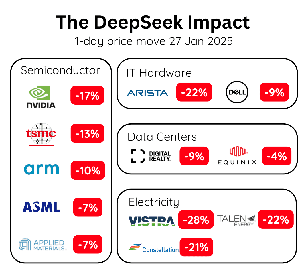 Investors worried that reduced infrastructure demands could depress revenue for key players like Nvidia and other hyperscalers, potentially upending the AI hardware and services narrative.