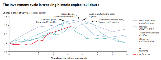 Like electricity, railroads, and the internet before it, AI is driving a structural shift that requires substantial capital investment to retool the economy for a new era.