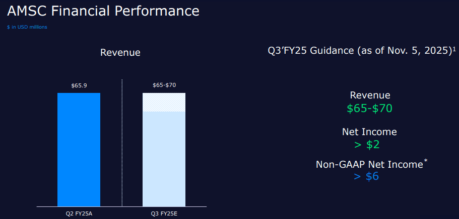 Looking ahead to Q4 ending March 31, 2026, AMSC expects revenues to exceed $80 million, with net income projected above $3 million, or $0.07 per share, and non-GAAP net income above $8 million, or $0.17 per share.
