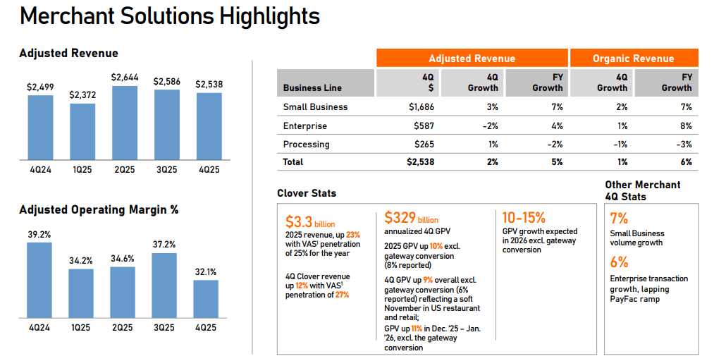 Fiserv delivered a mixed Q4 and full-year 2025 report, with revenue holding steady but earnings under pressure.