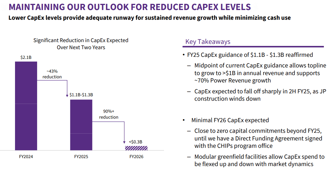 These projections imply that analysts are betting on normalization in the supply chain, improving cost efficiencies, and the long-promised scale advantages of Wolfspeed’s vertically integrated model finally showing through.