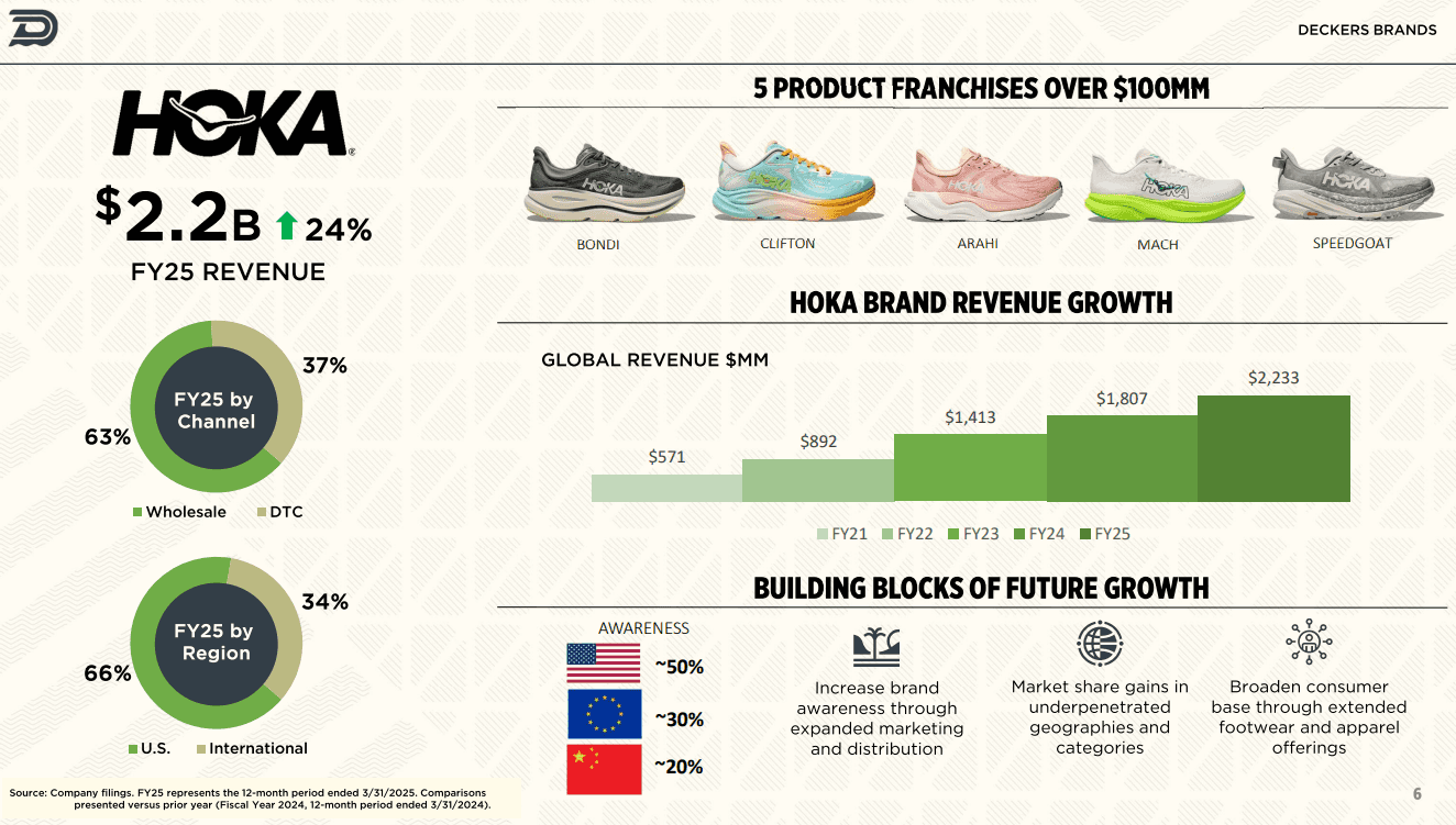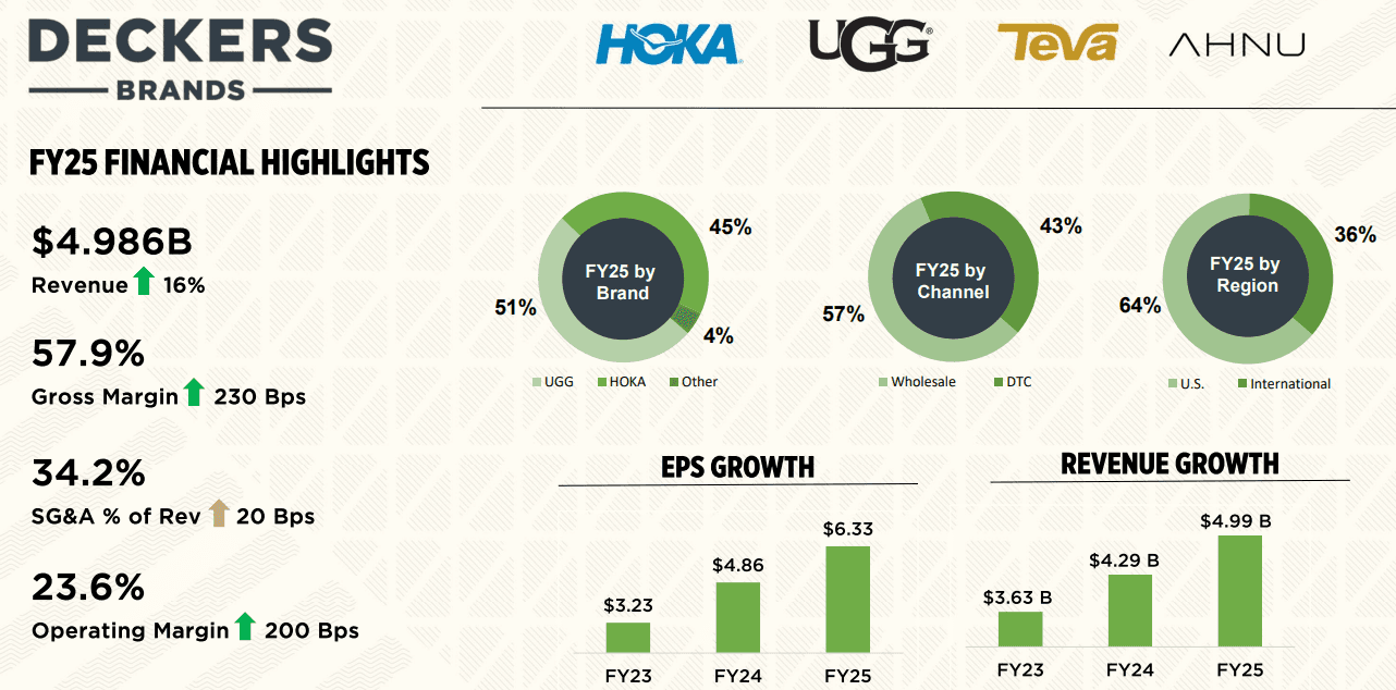 Despite the headwinds of softer consumer confidence, inflationary pressures, and lingering tariff uncertainties, Deckers has built a resilient brand portfolio capable of navigating volatile macro conditions. Its strength lies in both product quality and brand loyalty, which continue to drive repeat purchases and sustain pricing power.