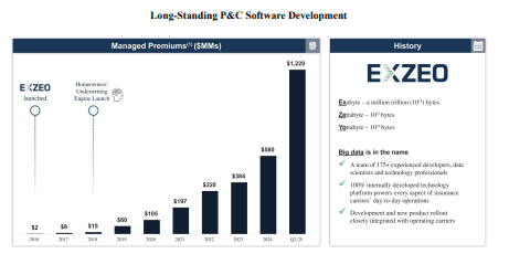 Description: Exzeo Group Inc provides turnkey insurance technology and operations solutions to insurance carriers and their agents based on a proprietary platform of purpose-built software and data analytics applications that are specifically designed for the property and casualty, or P&C, insurance ecosystem. Its Insurance-as-a-Service (IaaS) platform, which it refers to as the Exzeo Platform, currently includes nine configurable software and data analytics applications that are purpose-built to serve insurance companies and other customers in the insurance value chain. Through the Exzeo Platform, the company provides technology-based solutions and services for all operational and administrative activities and functions needed by P&C insurance carriers and their agents.
