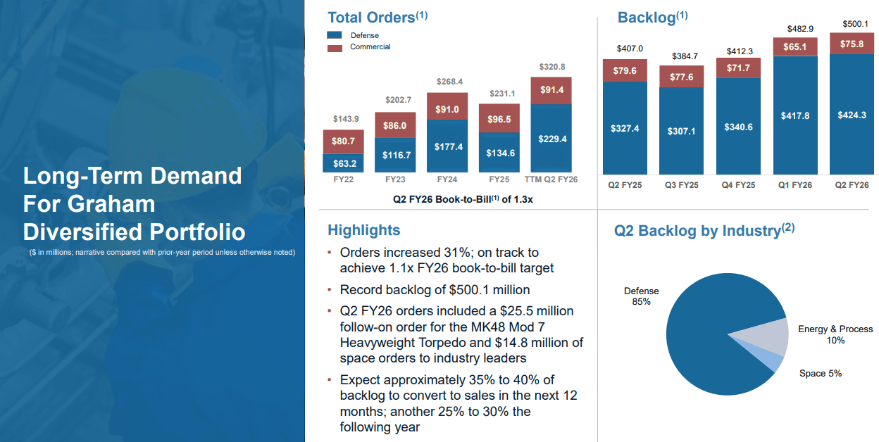In Q1 FY2026, GHM added $126 million to its backlog. This inflow highlights continued demand but also raises the need for capacity expansion to convert orders into revenue efficiently. Having a massive backlog is valuable, but it only benefits shareholders if GHM can accelerate conversion. Currently, the company projects that 35–40% of the backlog will convert to revenue in the next 12 months, with an additional 25–30% in the following year.