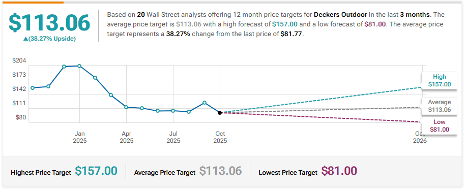 Deckers offers footwear, apparel, and accessories products under various brands, such as UGG, Hoka, Teva and Sanuk. The UGG brand represents just over 54% of Deckers’ annual revenue in the first three quarters of 2025, and saw sales grow 14.9% compared to the first three quarters of 2024.