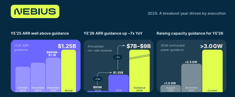 For full-year 2025, Nebius generated approximately $520 million in revenue, reflecting roughly 140% year-over-year growth, driven by ramped capacity and large enterprise AI workload contracts.