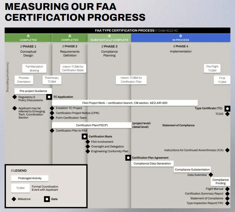 The company is nearing completion of conventional takeoff and landing test points, while prior campaigns have already demonstrated vertical takeoff, hover, and transition maneuvers. This testing not only advances safety validation but also builds the extensive data required for regulatory approval.