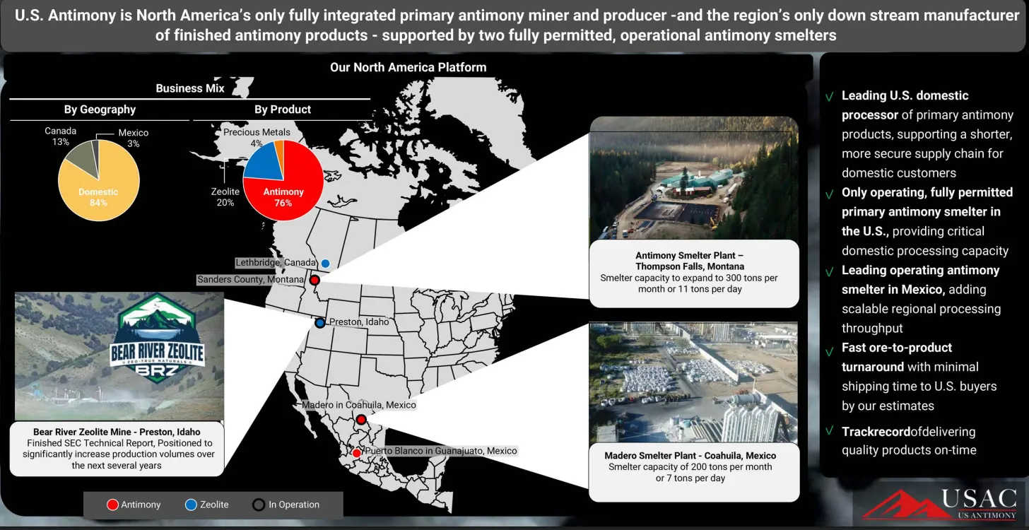 UAMY operates across a few key verticals, but the core of the business is clearly antimony. This is where the real value sits. They produce antimony trioxide used in flame retardants, antimony metal tied to defense applications and batteries, and antimony trisulfide used in ammunition. It’s a niche market, but an important one, especially as supply chains tighten.