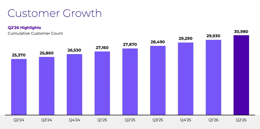 Free cash flow came in at $191.4 million, reflecting a 26% margin, while customer growth accelerated, adding over 1,000 new clients the largest quarterly increase in eight years bringing the total customer base to 30,980.
