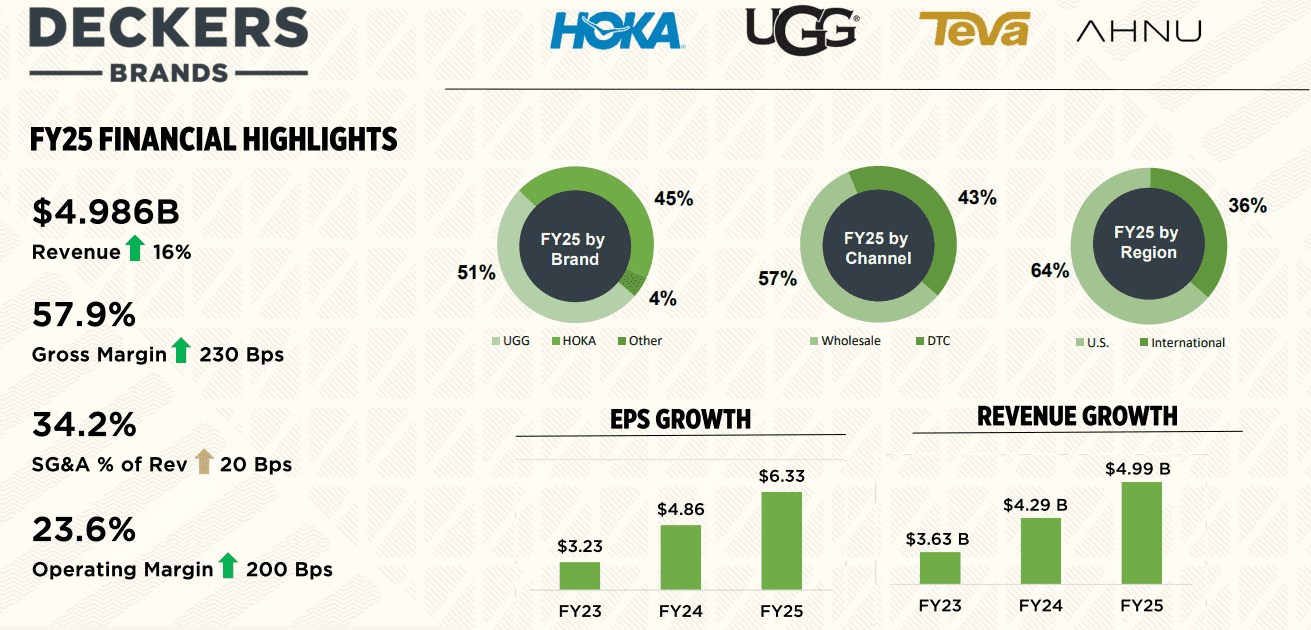 Growth is being driven primarily by its two powerhouse brands. UGG continues to expand steadily, while HOKA has become the engine of the company, posting nearly 47% growth.