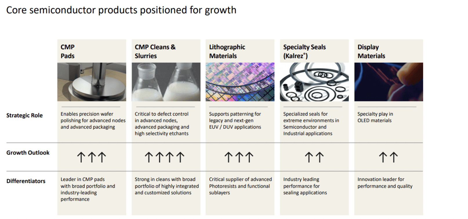 The company focuses on differentiated electronic materials supplying the critical consumables used in semiconductor manufacturing, advanced packaging, interconnects, thermal management, and display technologies.